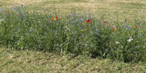 In maart hebben we weer een kleurrijk bloemen- en kruidenmengsel ingezaaid op een groot deel van de Waaldijk in Brakel. Inmiddels staat het mengsel prachtig in bloei en is de dijk getransformeerd tot een levendig lint van kleur en geur.